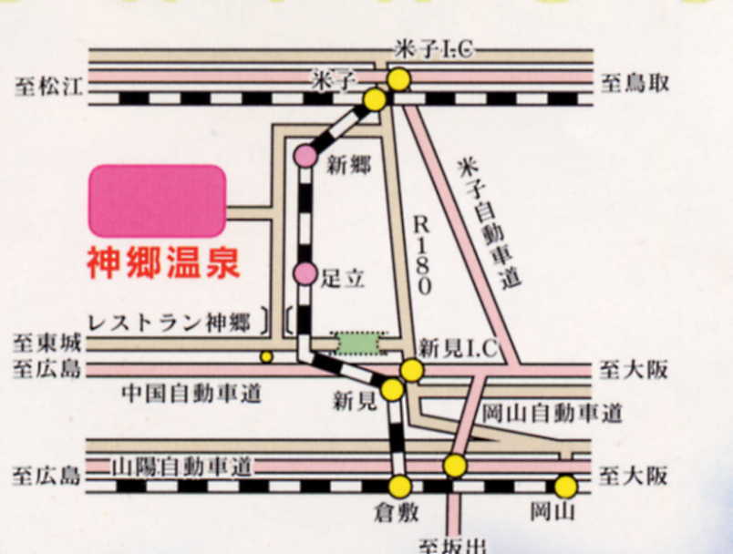 今回は、神郷温泉で汗を流しました! 180号線を新見方面へ、いつもの新千屋温泉近くから花見山スキー場方面へ行くと表示あり。183号線からの方が早いかもしれません。 |