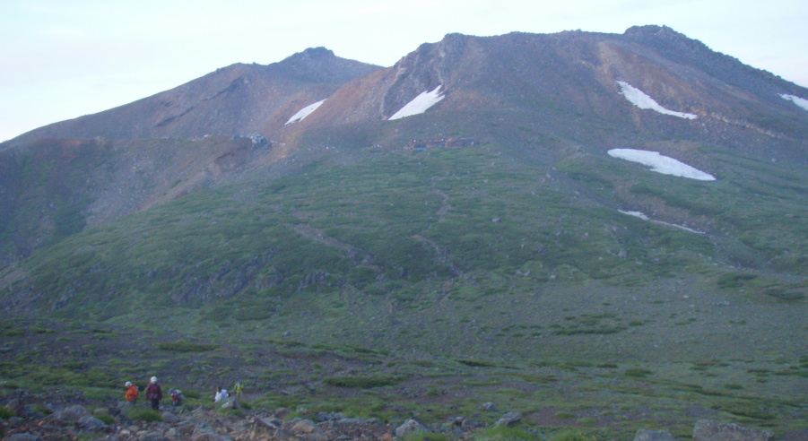 ■2012.07.28-29:御嶽山 【参加者:赤澤、久保】 ・5回目にして初めて山頂を踏む事が出来ました。このコースは初日、原生林の中、森林浴を浴びながら進み、7合目から8合目を過ぎた辺りまでは、かなりハードな水無の沢登状態が続き、9合目からは低木帯を残雪を眺めながら三ノ池に到着。言うまでもなく誰一人会うことも無く、静寂な山行を楽しみました。 ・2日目はうって変わって、二ノ池から剣が峰までは、白装束を羽織った老若男女の人の波・波・波が延々と続き、信仰の力をまざまざと感じさせられた。 ・出発:2012.07.27 18:00 天候;28日、29日(晴) ・コース; 28日標高差1,230m (開田高原登山口1520m⇒三ノ池避難小屋2750m) 29日標高差347m (三ノ池避難小屋⇒白龍避難小屋⇒サイノ河原⇒二ノ池⇒剣ヶ峰3067m⇒女人堂⇒ロープーウェイ⇒唐沢林道⇒開田高原) |