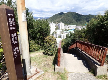 ■2025.09.30: 六甲山地:須磨アルプス 【参加者:岡村眞由美・繁雄】 ●コース:須磨浦公園駅→鉢伏山→鉄拐山→おらが茶屋→栂尾山→横尾山→東山→板宿駅 須磨浦公園駅から鉢伏山・旗振山付近からの海浜公園を含む景色はまずまずで、鉄拐山・おらが茶屋までは、整備された公園を歩いた感じでした。 おらが茶屋から栂尾山の間は、一旦、団地の中を歩き狭い長い階段を一気に登り栂尾山の展望台へ。 写真右:おらが茶屋よりの下山道(狭い階段)〔前方 栂尾山〕 横尾山の先、馬の背付近の少しの間、岩場の通過地点が独特の風景でした。 |