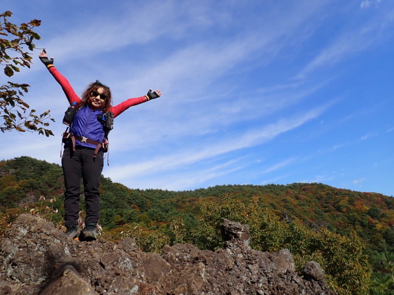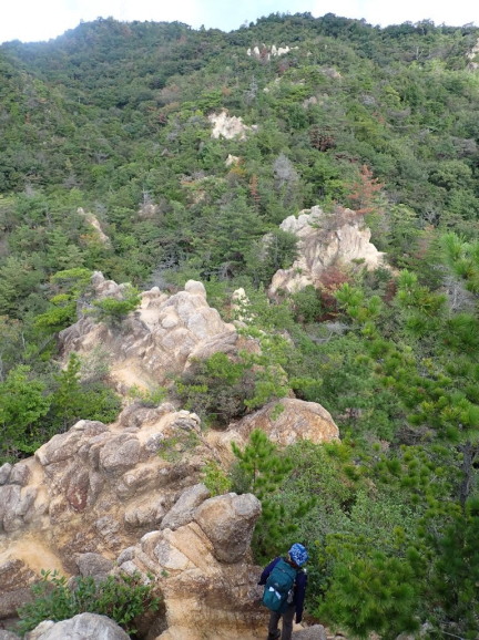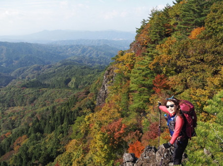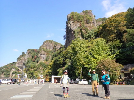 | ■2025.10.29: 霊山(りょうぜん) 【参加者:岡村眞由美・繁雄】 コース:駐車場⇒宝寿台⇒護摩壇⇒霊山城跡⇒東物見岩(霊山山頂)⇒蟻ノ戸渡り⇒五百羅漢 ⇒弁天岩⇒大山祇神社⇒日暮岩⇒見下し岩⇒駐車場 1日~3日霊山 紅葉まつりとのことで、紅葉し始めといった感じでしたが、所々に岩の間を通過したり、展望できる岩がありよく整備されたハイキングコースで、楽しめました。ゆっくり回って、3時間20分のコースでした。 |