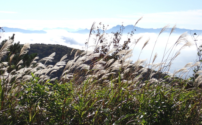 | ■2025.10.10: 福智山 【参加者:久保、他】 久しぶりの福智山、八丁経由~上野越経由で周回。相変わらず汗だくでしたが、ススキもそよいで幾分秋の気配! 添田方面に雲海、英彦山から犬ヶ岳稜線が雲上に、更に九重連山遠望!いい景色に出会いました。 |