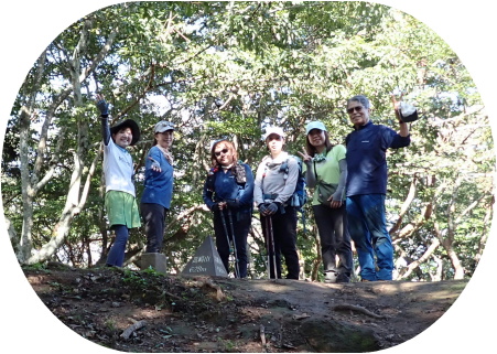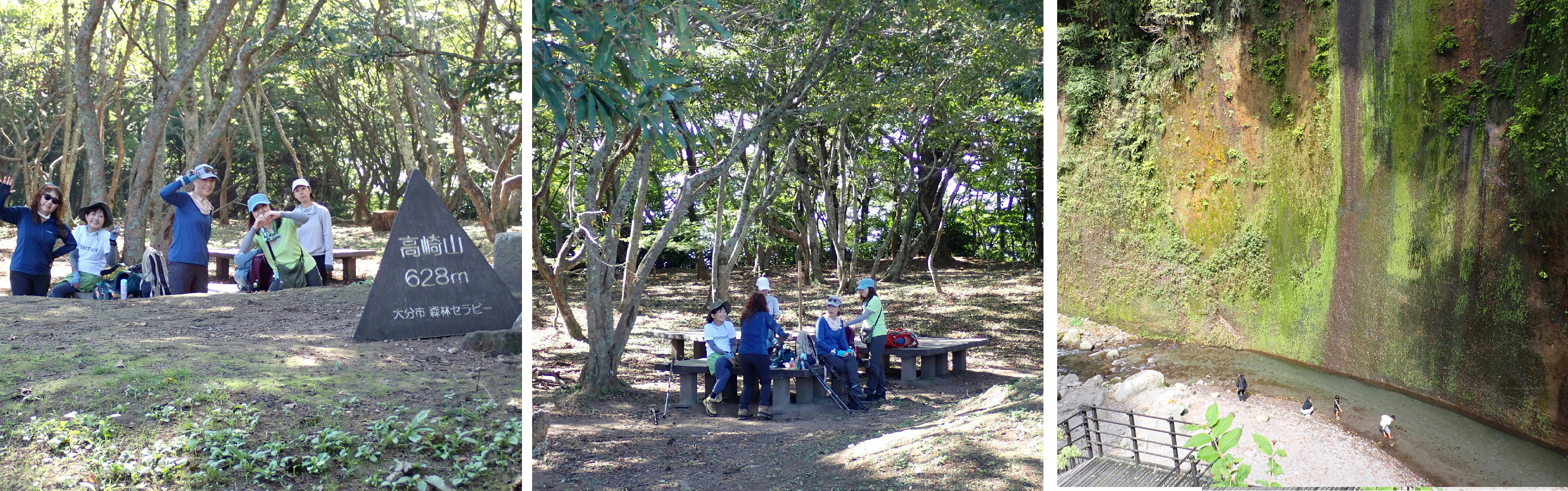 ■2025.10.13: 高崎山 【参加者:川原、神田、三栗、岡村眞由美、毛利A、久保】 高崎山は、城址でした!・・・訪れてみて初めて認識しました。 頂稜に立てば、少々高い樹木が邪魔しますが別府湾一望、国東半島、佐賀関半島まで望むことができます。まさに海岸に突き出た堅固な自然の要塞 銭瓶峠の広い駐車場(標高:340m)からスタート、登山道は緩やかな整備された歩道です。 標高500mを越えると自然林が広がり山歩きの気分に浸れますよ。のんびり歩いて往復3時間弱でした。 帰りに “はさま由布川峡谷”に立寄り、いつもの城島高原で汗を流し安心院経由で帰北しました。峡谷駐車場はR601から案内板に従ってアクセスできます。行動時間:3時間弱 |