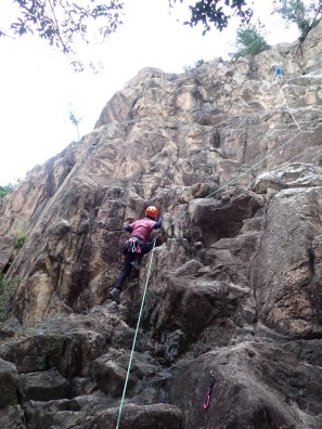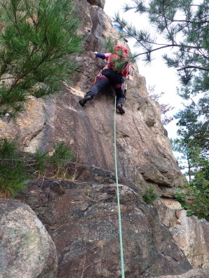 ■2025.10.18: 陶ヶ岳(RC) 【参加者:土橋、河村、岡村繁雄】 久しぶりの岩トレーニングです。 やっと心地よい季節となく、暑くもなく寒くもなく心地よい風が吹いて、良いコンディションでした。 懸垂下降の練習後、軽いザックを背負ってのクライミングトレーニングを実施しました。 |