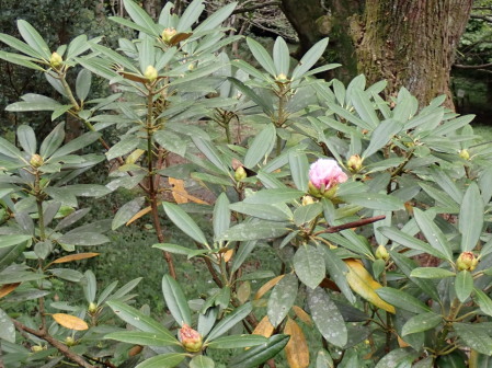 ■2025.10.22: 皿倉山 【参加者:三栗、岡村眞由美・繁雄】 前の週登った時に、先日までの異常な暑さでシャクナゲが開花しそうだったため、 確認に行ってきました。 二輪ほど開花していて、他のつぼみも膨らんでいましたが、来年まで持たない感じです。 周辺の桜までも、ちらほら咲いていました。 |