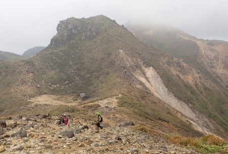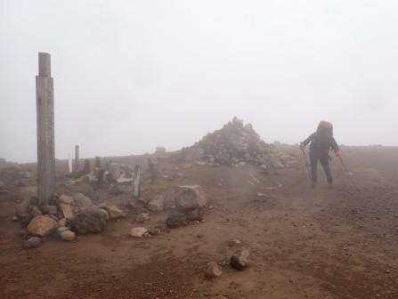 | 一切経山山頂 猛烈な強風でふら付きながら歩行 | 吾妻小富士を望む |