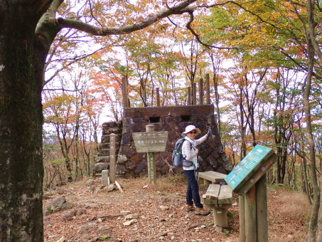 | 標高750mあたりの林道 | 紅葉盛りの犬ヶ岳ピーク |