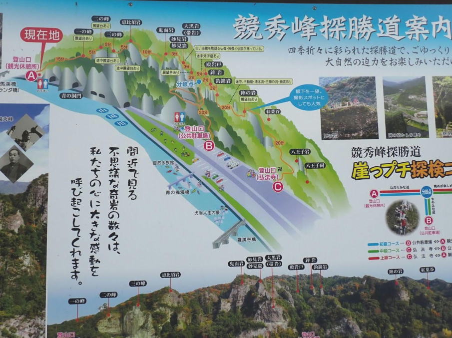 | 陣の岩 に至る狭い岩場 | 下山後 公共駐車場にて |