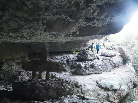 | (上)霊山駐車場より (下)宝寿台にて | 護摩壇の岩場にて |